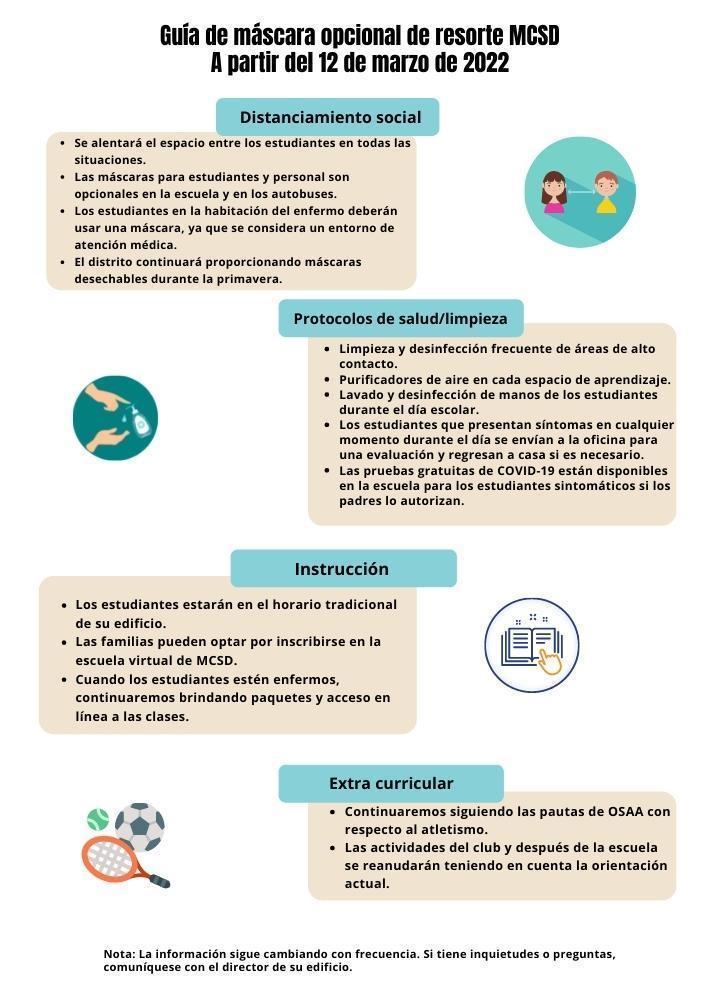 Nos complace compartir que a partir del lunes 14 de marzo, las máscaras serán opcionales tanto para los estudiantes como para el personal.